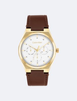 A classic watch sets off any outfit, whether formal or casual. Calvin Klein's large selection of men's watches includes something for every taste and style. Each of our timepieces is crafted to the highest possible standard, ensuring durability and reliability. Our men's leather strap watches use the finest materials and add a timeless, traditional finish to your look. Whether you favour men's black watches or men's bracelet watches, you will find a wide range of styles, from classic to modern. Our men's silver watches are the perfect component for a refined office look alongside a formal shirt and a sleek leather backpack. Alternatively, our variety of watches can also effectively complement a casual sweatshirt and slim chinos combo.